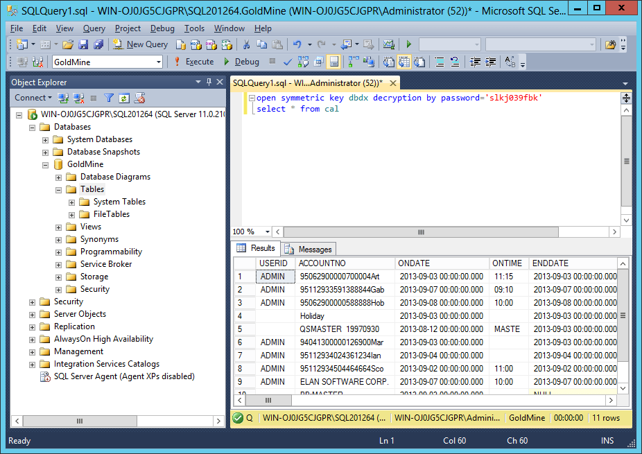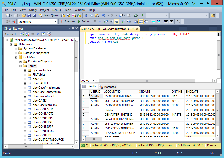 Now lets briefly go through the steps to decrypt a database. First thing you need to do is type in the following SQL statement: